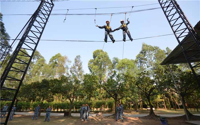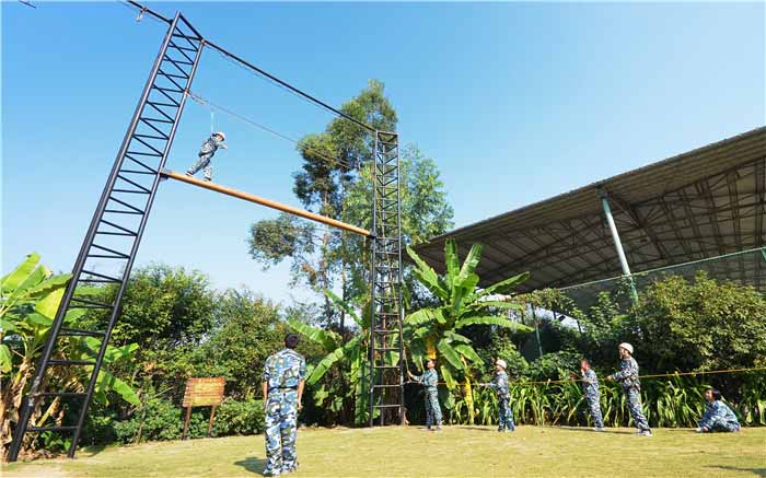 拓展培訓(xùn)是一項(xiàng)能夠體驗(yàn)朋友之間、同事之間的充分體現(xiàn)溝通能力、團(tuán)結(jié)合作的一種團(tuán)體運(yùn)動(dòng)。拓展的高空類里面又包含了很多小項(xiàng)目,(如:跳出真我、高空平衡木、攀巖、巨人梯、斷橋、高低V等)簡(jiǎn)單的跟您介紹我們一兩個(gè)高空項(xiàng)目的一個(gè)操作流程和這個(gè)項(xiàng)目所來(lái)帶的目的。跳出真我:首先我們先組成一個(gè)小團(tuán)隊(duì),然后單個(gè)學(xué)員戴好安全頭盔、穿好安全衣,在安全繩的保護(hù)下爬上七米高的樁上向前方跳出,并抓住前方1.8米處的空中單杠;而其余的人則在下面拉緊安全繩?;蛟S你會(huì)害怕、會(huì)猶豫,但是在你跳出的那瞬間你就會(huì)覺(jué)得海闊憑魚躍,天高任鳥(niǎo)飛。很多時(shí)候當(dāng)面臨一份抉擇的時(shí)候,只有大膽的跳出去,才是真正的海闊天空。高空平衡木:首先我們也是組成一個(gè)小團(tuán)隊(duì),然后單個(gè)學(xué)員戴好安全頭盔、穿好安全衣,在安全繩的保護(hù)下走過(guò)距離地面七米高、長(zhǎng)六米、直徑只有二十五厘米的獨(dú)木橋?;蛟S你平衡能力不好、或許你在上往下看是會(huì)害怕。但是這個(gè)項(xiàng)目卻能讓你挑戰(zhàn)自我,挖掘潛能。當(dāng)面前的路只有唯一選擇的時(shí)候,那就大膽的向前走。在所有項(xiàng)目培訓(xùn)期間要注意1、必須服從教練及訓(xùn)練工作人員的管理;2、有心腦血管、癲癇等疾病不適合參加培訓(xùn)的,應(yīng)在訓(xùn)前告知本單位管理人員或我公司教練;3、嚴(yán)格遵守作息時(shí)間,禁止賭博、飲酒、培訓(xùn)過(guò)程中禁止吸煙。