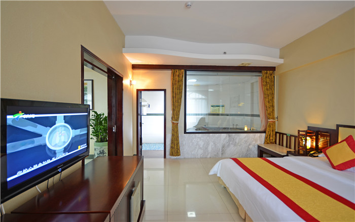 商務(wù)樓客房為于公司主樓,屬于商務(wù)型客房,層高6層,站在商務(wù)客房內(nèi)可一覽景區(qū)風(fēng)景,清晨,推開窗戶。微風(fēng)吹來,一陣清新、幽香、淡雅的泥土氣息迎面而來。商務(wù)樓設(shè)有三種房型,分別為豪華一房一廳(房間帶室內(nèi)溫泉池)、豪華雙人房(不帶室內(nèi)溫泉)、豪華三人房(不帶室內(nèi)溫泉)酒店客房豪華溫馨,配有空調(diào)、書桌、電話、液晶電視、房內(nèi)保險(xiǎn)箱、洗刷用品、淋浴設(shè)施,吹風(fēng)機(jī)、免費(fèi)桶裝水、免費(fèi)WiFi等設(shè)施,住房包含了露天無限次溫泉門票和自助早餐,健身房、水療SPA、羽毛球、乒乓球、臺(tái)球等,無限量免費(fèi)提供飲料,水果。溫泉總的有60幾個(gè)露天溫泉池。其中有養(yǎng)生區(qū)(如茉莉花池、人參池、牛奶池、酒池等)、水療SPA按摩區(qū)、高溫池等等特色溫泉池。如需詳細(xì)了解請(qǐng)?jiān)诰€咨詢哦。使您在度假村盡情玩樂后能夠享受溫馨的住宿。